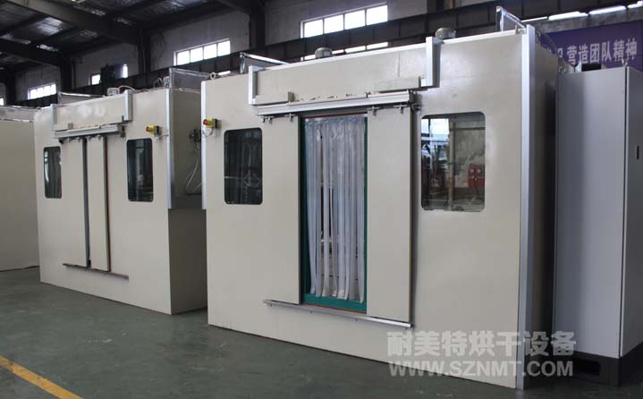 1,物流人員在加熱箱后面把料車推到加熱房里,關(guān)上卷簾門開始加熱。