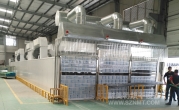 每個小車分10層堆放日豐管,每層放6包,則每車可放60包,每包重約28KG,烘烤區域分3個獨立通道,可以單獨控溫,每個通道烘烤區可以放置6輛小車,每個通道每20分鐘出一輛小車,小車自動進出。小車由客戶自行設計制作。